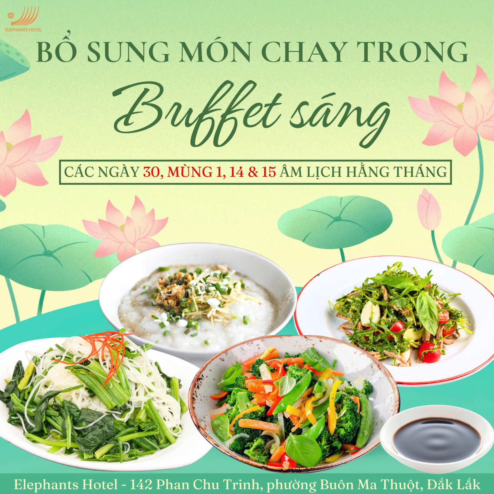 BỔ SUNG MÓN CHAY TRONG BUFFET SÁNG – LỰA CHỌN NHẸ NHÀNG CHO NGÀY AN LÀNH Nhằm đáp ứng nhu cầu ẩm thực chay ngày càng đa dạng, đặc biệt vào những ngày đầu và giữa tháng âm lịch, Elephants Hotel bổ sung các món chay ...